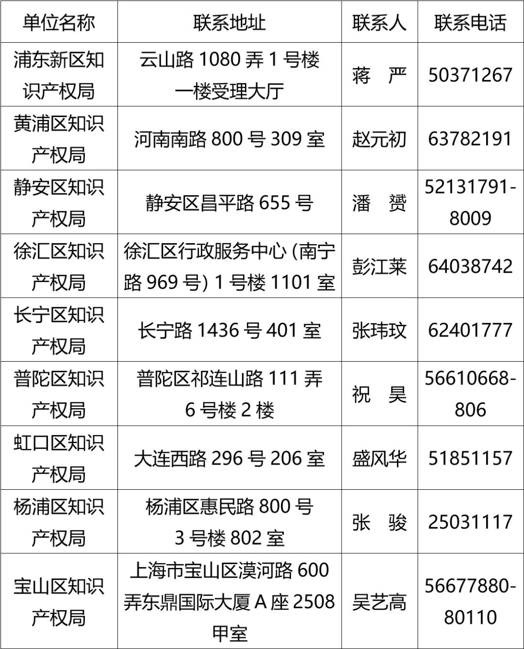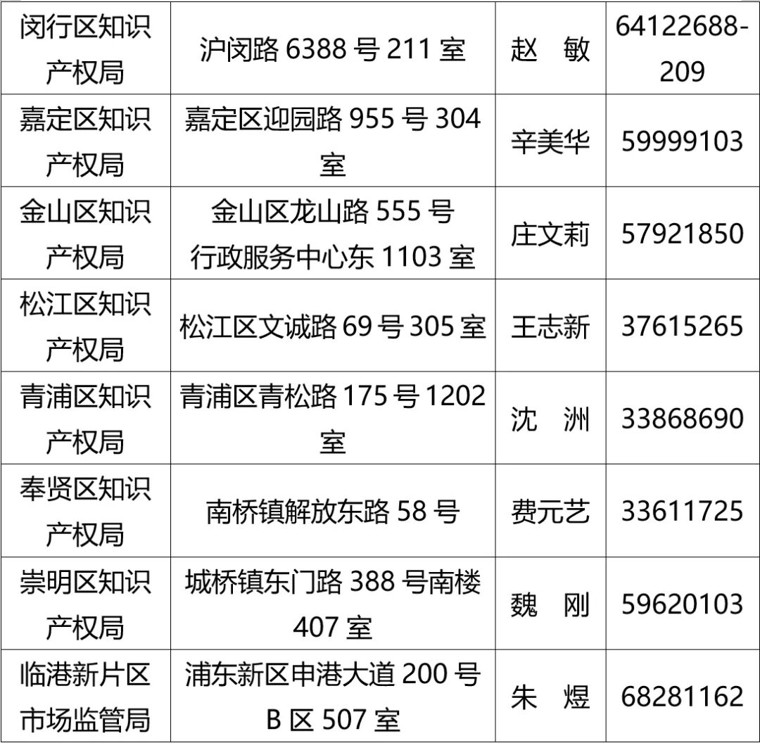 五、各区知识产权局联系人